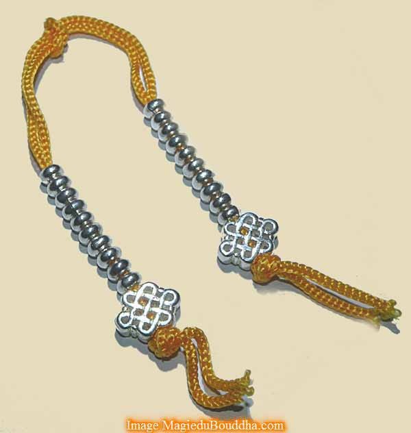 Compteurs de mantra pour mala - noeud sans fin en métal couleur argent.