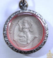 Cette petite amulette circulaire en poudre sacrée a été bénie en 2022 au Wat Saman Ratanaram, temple renommé de la province de Chachoengsao, célèbre pour son immense statue rose de Phra Pikanet couché (Ganesha).