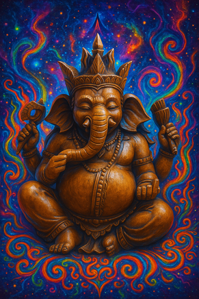 Sous les voiles brûlants de l’archipel, dans une forêt où même les ombres chantent, un artisan a donné forme à une présence. Ce n’est pas qu’un éléphant. Ce n’est pas qu’un dieu. C’est un sourire caché dans le bois, une vibration qui respire la clarté dans le chaos. Ganesh ne vient pas. Il est déjà là. Il attend que ton esprit l’aperçoive.