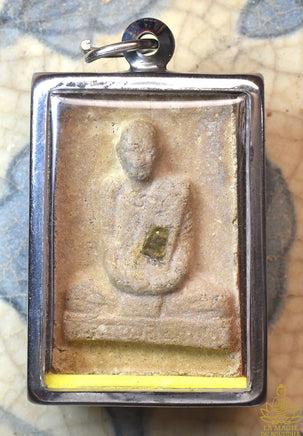 Voici une rare et précieuse amulette ancienne du très vénérable Luang Phor Doem (1860–1951), illustre maître du Wat Nong Pho dans la province de Nakhon Sawan. Considéré comme l’un des plus grands moines thaumaturges du Siam, il est vénéré pour sa maîtrise des sciences ésotériques et ses pouvoirs de protection et d'invulnérabilité inégalés.