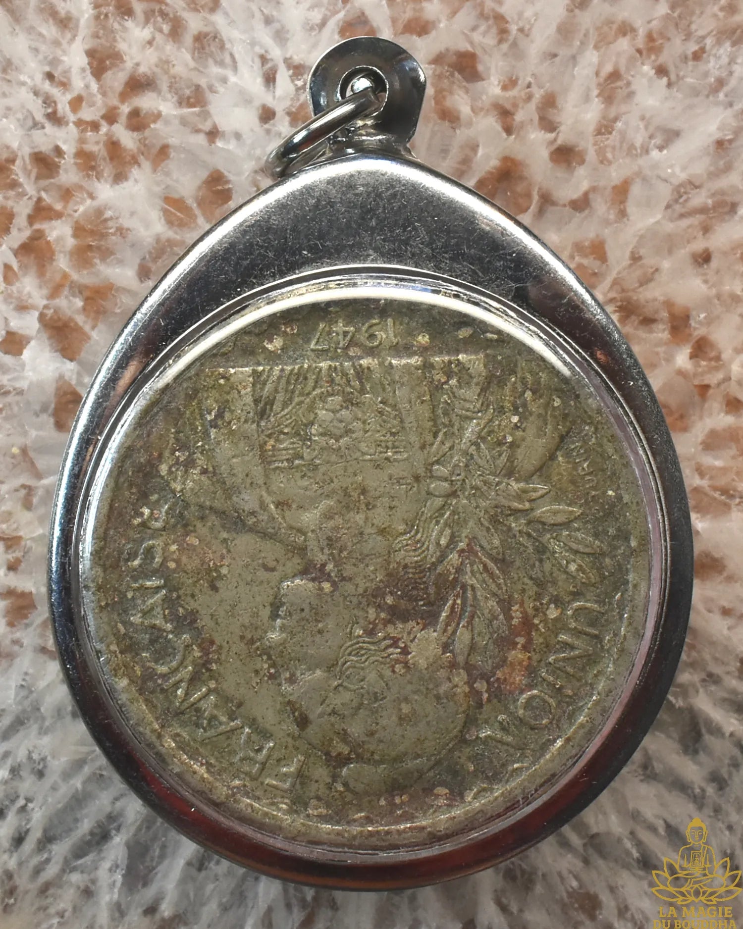 🧧 Piastre indochinoise de 1947 montée en reliquaire : Talisman de richesse et de prospérité