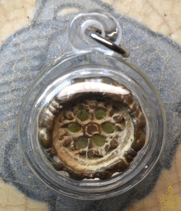 Dans la tradition bouddhiste, le Dharmachakra (roue de l’enseignement) symbolise la voie de l’éveil, la continuité du Dharma et le cycle de la libération. Porter une telle amulette, surtout dans une version rare et vénérable comme celle-ci, est considéré comme un puissant rappel de la pratique et un protecteur spirituel.