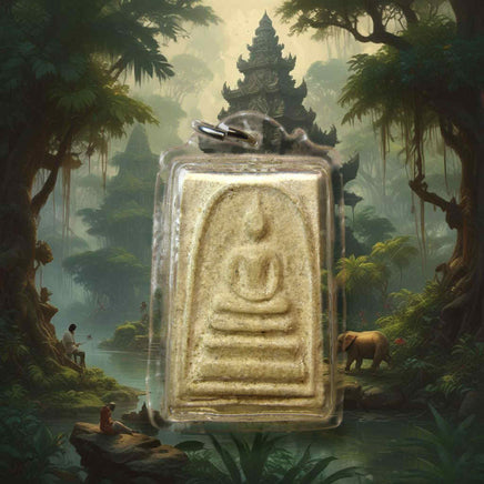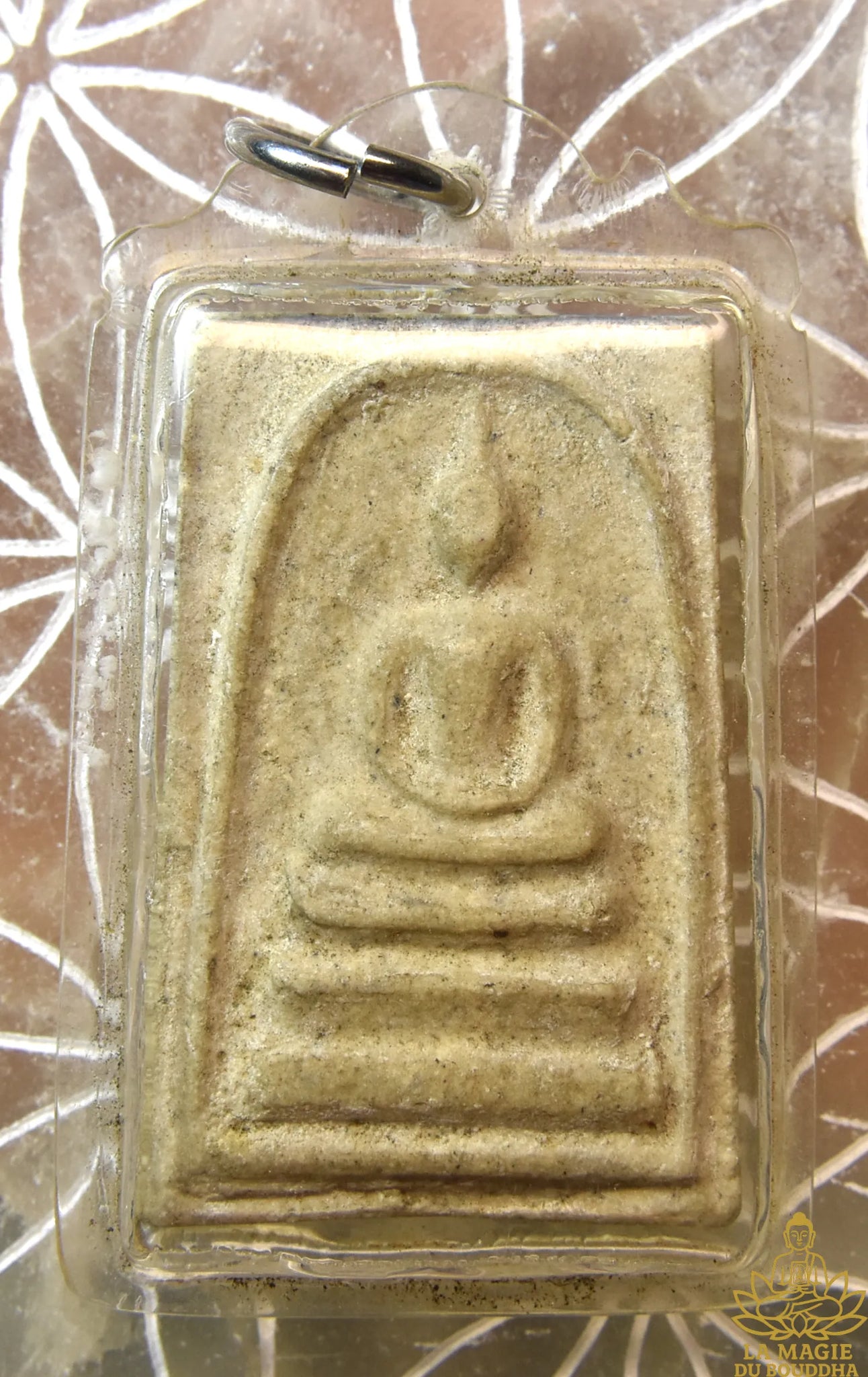 Les amulettes Phra Somdej sont considérées comme les plus prestigieuses de Thaïlande, représentant l’idéal de sérénité et de sagesse. L’ajout du Dharmachakra en fait une pièce encore plus significative, incarnant la diffusion de la Loi bouddhique et la victoire de la vérité sur l’illusion.
