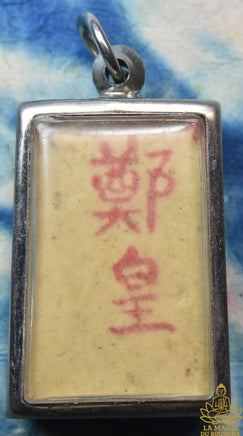 Au revers, on distingue l’inscription 鄭皇 (Zheng Huang), que l’on retrouve sur certaines séries. Ce marquage fait probablement référence au roi Taksin (鄭信大帝), figure vénérée par la communauté sino-thaïe, et témoigne de l’influence culturelle et spirituelle des commerçants chinois de Bangkok dans la production de ces amulettes.