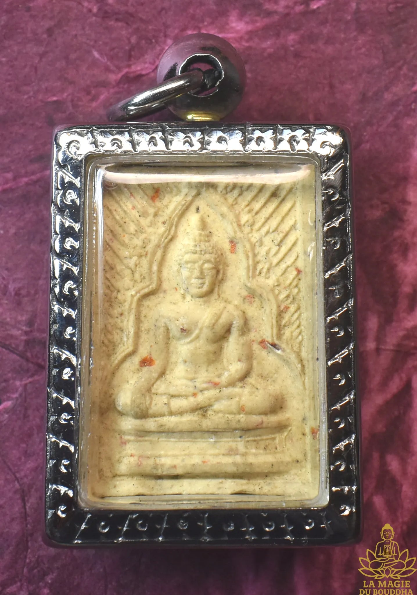 Cette belle amulette Phra Somdej Roon Arun a été consacrée en 1995 au Wat Arun, le célèbre « Temple de l’Aube » sur les rives de la rivière Chao Phraya à Bangkok. Cette série limitée s’inspire directement des Phra Somdej Wat Paknam du très vénérable Luang Phor Sodh, célèbre pour sa pratique du Dhammakaya et son immense rayonnement spirituel.