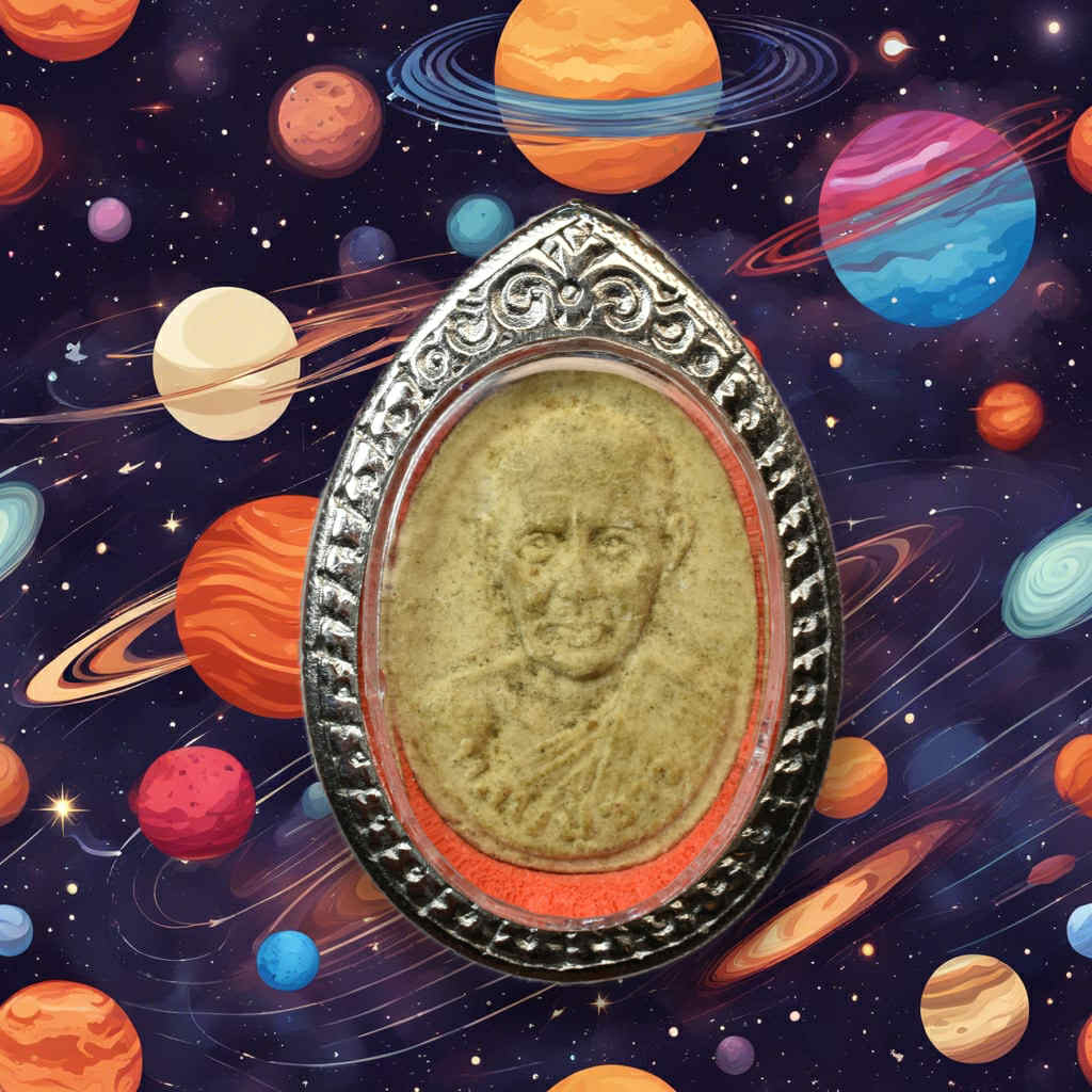 Le revers est orné du puissant yant Trinsinghe, un symbole sacré de protection contre les dangers visibles et invisibles, qui attire bénédictions, prospérité et longévité. Cet objet de collection est hautement recherché par les dévots et les connaisseurs d’amulettes authentiques.