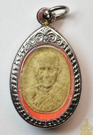 Voici une rare amulette portrait Roop Lor du très vénérable Luang Phor Khao Analayo (หลวงปู่ขาว อนาลโย 1888-1983), moine ermite éminent du Wat Tham Klong Phen (Udon Thani). Cette série limitée fut consacrée en 1980 au Wat Laksi (Bangkok), en présence de nombreux moines de haut rang. L’amulette présente le portrait de ce maître respecté, dont la vie ascétique et l’enseignement rigoureux ont marqué le bouddhisme thaïlandais.