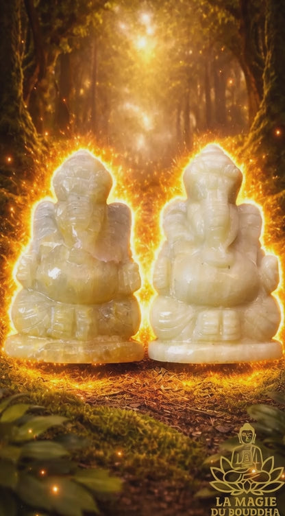 Statuettes de Ganesh en calcite jaune translucide et laiteuse La Magie du Bouddha.