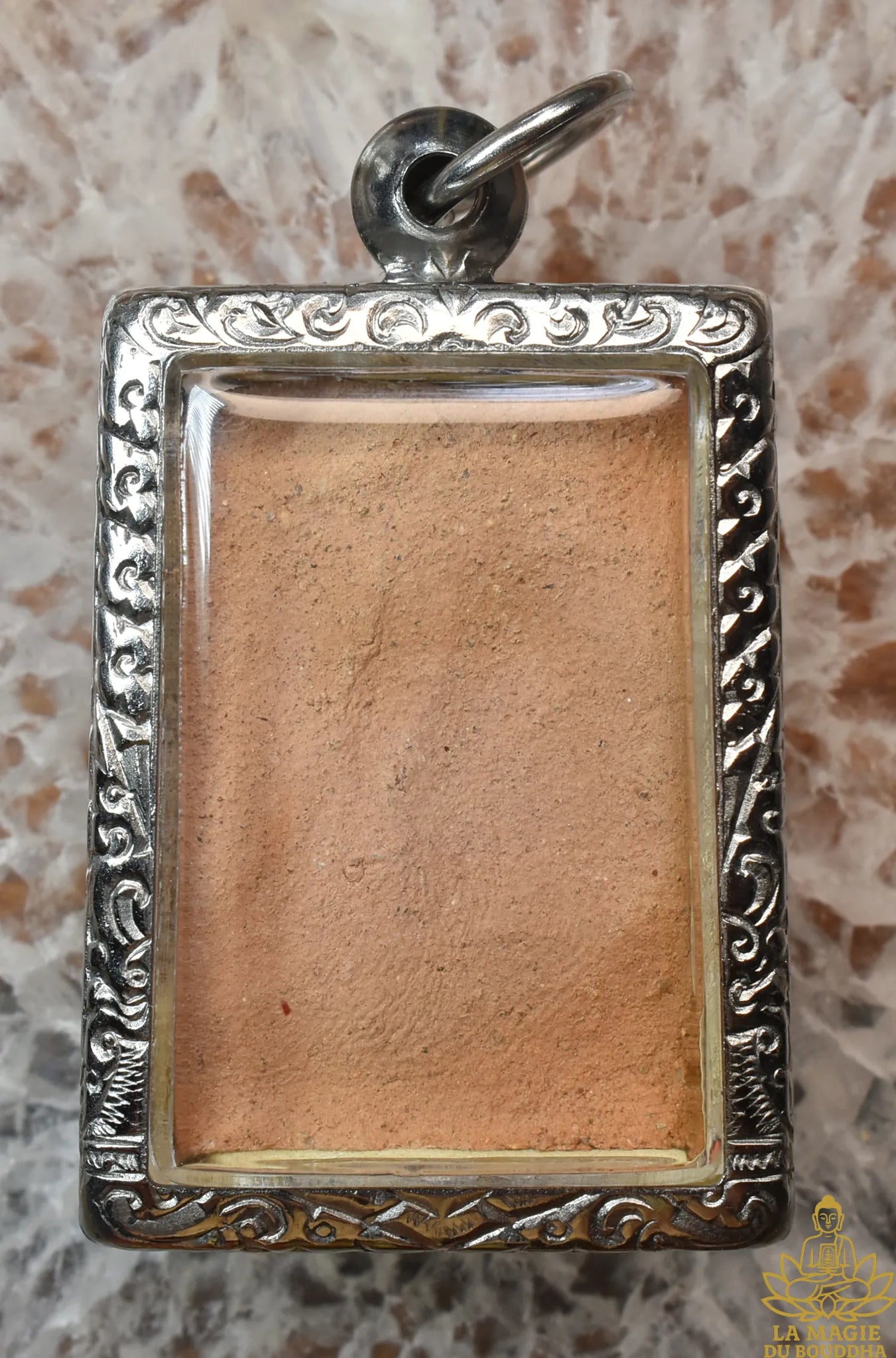 Cette amulette Sian Lersi rare a été faite main par le très vénérable Luang Phor Phong Titajaro, à partir de terre crue de sites sacrés soigneusement collectée selon la tradition des ermites thaïs. Chaque pièce fut façonnée à la main par le maître, conférant à chacune une aura unique et une énergie propre.
