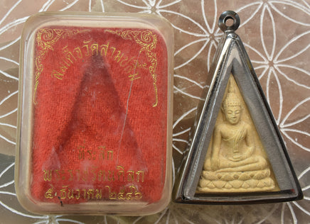 Le modèle Phra Nang Phaya, connu comme l’amulette de charme et de prestige féminin, est réputé pour attirer la bienveillance, la chance en amour, et la reconnaissance sociale. Son iconographie classique représente le Bouddha assis sur un trône de lotus, dans une forme triangulaire symbolisant la stabilité, la grâce et la protection divine.