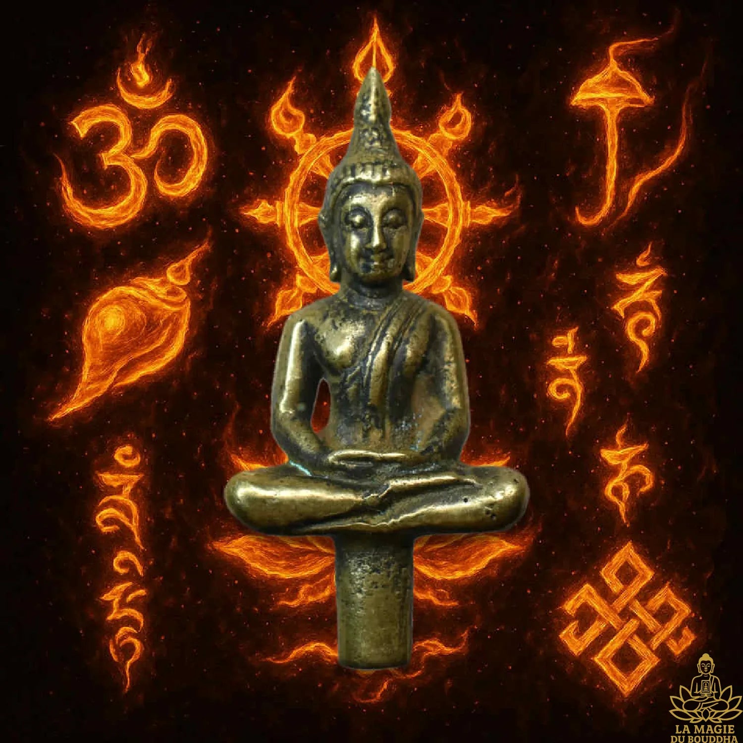 Ces amulettes furent créées sous la supervision directe du vénérable, dans le but de protéger et bénir les fidèles contre la malchance et les influences négatives. Leur nom, Phra Yod Thong (“Bouddha au sommet doré”), évoque la lumière de la victoire spirituelle sur les obstacles matériels.
