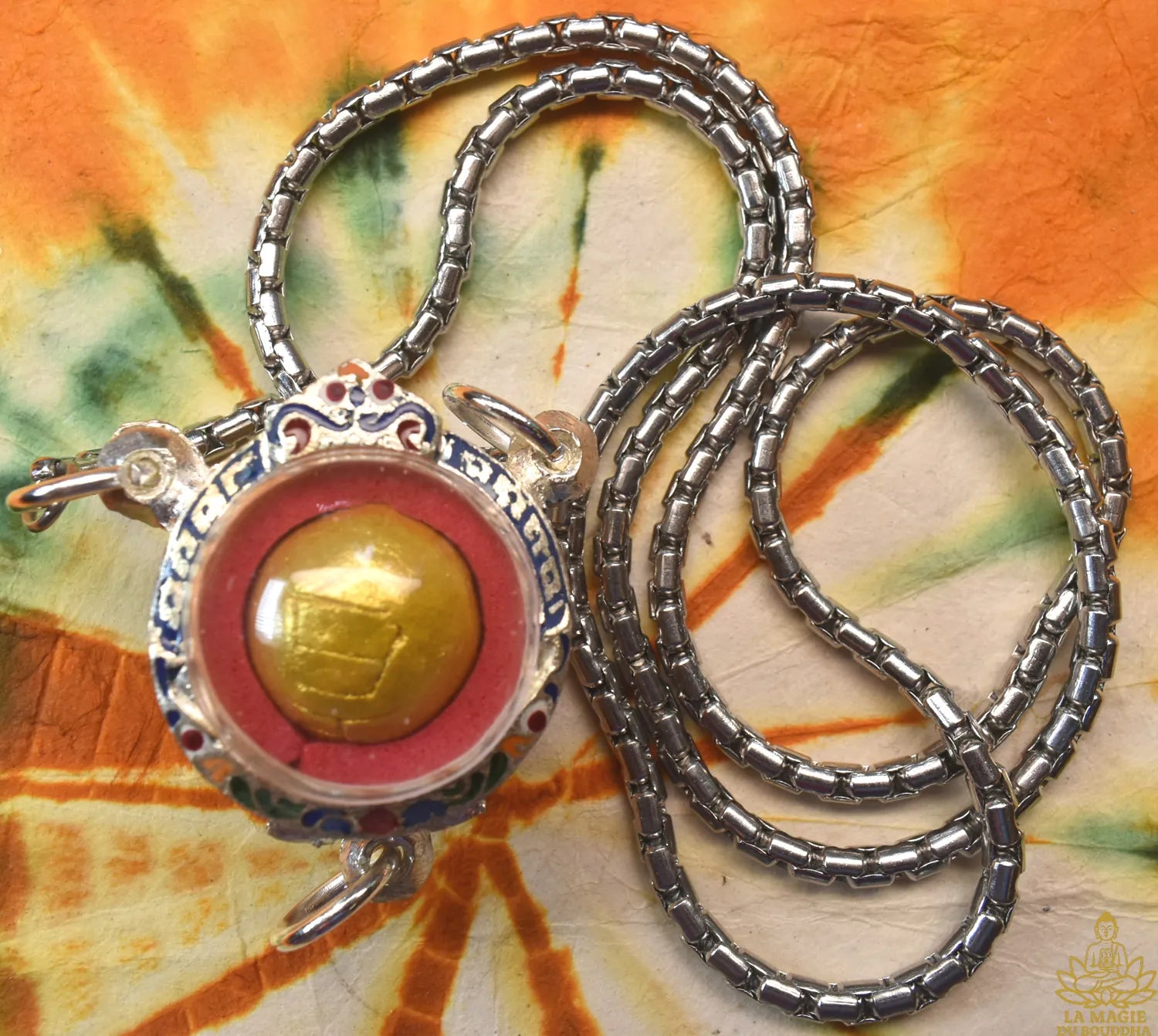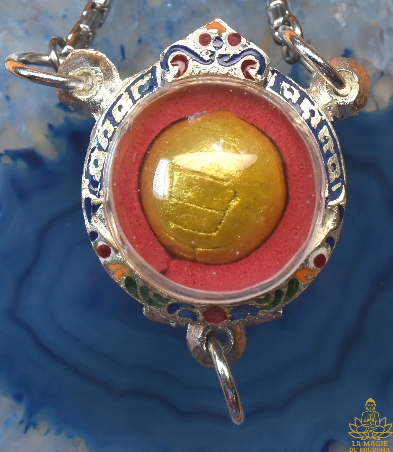- Reliquaire : Reliquaire neuf sur mesure en métal couleur argent avec décor traditionnel émaillé à trois anneaux, avec chainette inox neuve offerte.