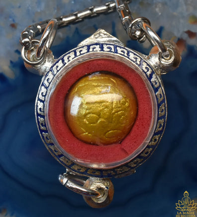Cette perle protectrice est réputée pour offrir prospérité, rayonnement et protection karmique à celui qui la porte. Le terme « Pid Thong » signifie littéralement « scellé d’or », symbolisant l’esprit purifié et le corps scellé par la lumière dorée du mérite.