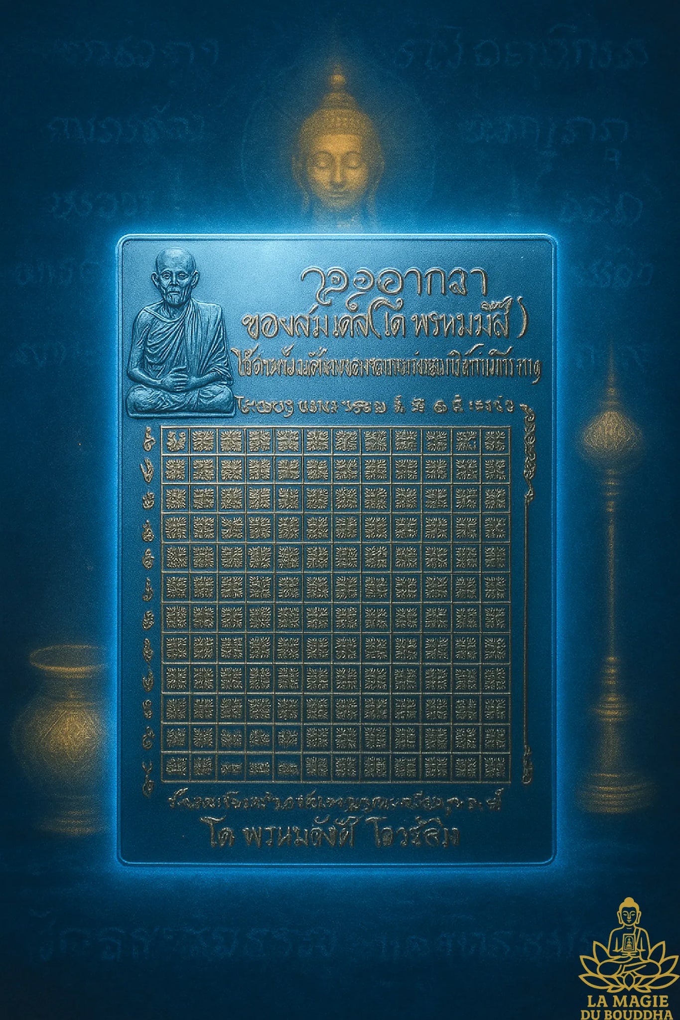 Carte rituelle aux 108 yant (pour eau bénie Bouddhiste) - Wat Intharam Worawiharn. La Magie du Bouddha.