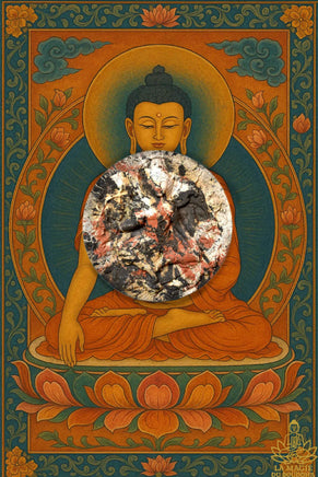 Crafted from a multicolored ritual paste blending sacred earths and ancient relic powders, this piece represents the fusion of the protective energies of Thao Jatukham Rammathep and Phra Phuttha Sihing Buddha . Its dense, tormented style symbolizes the fight against inner darkness, while traces of ancient pigments recall the fervor of the great collective blessing held at the royal temple.