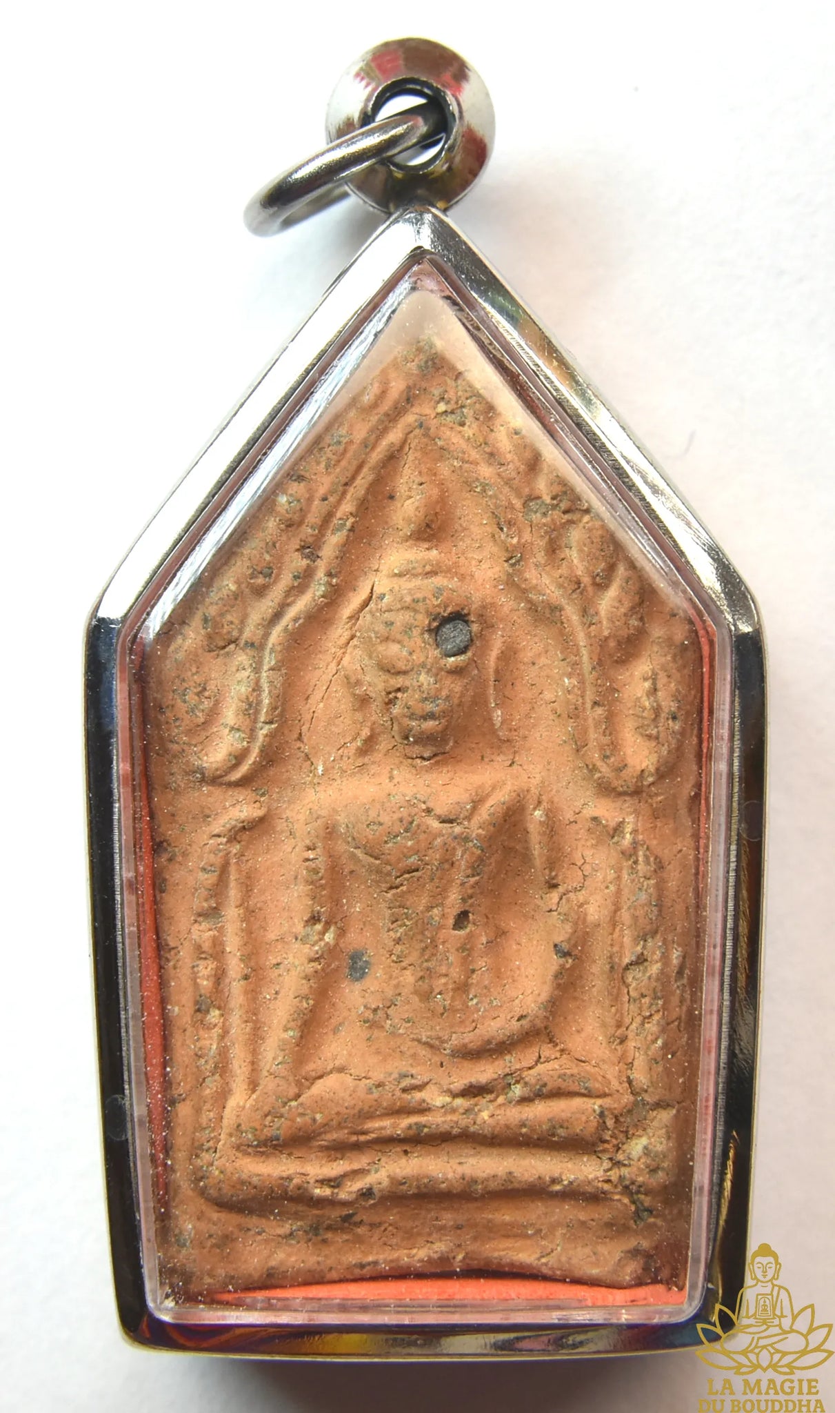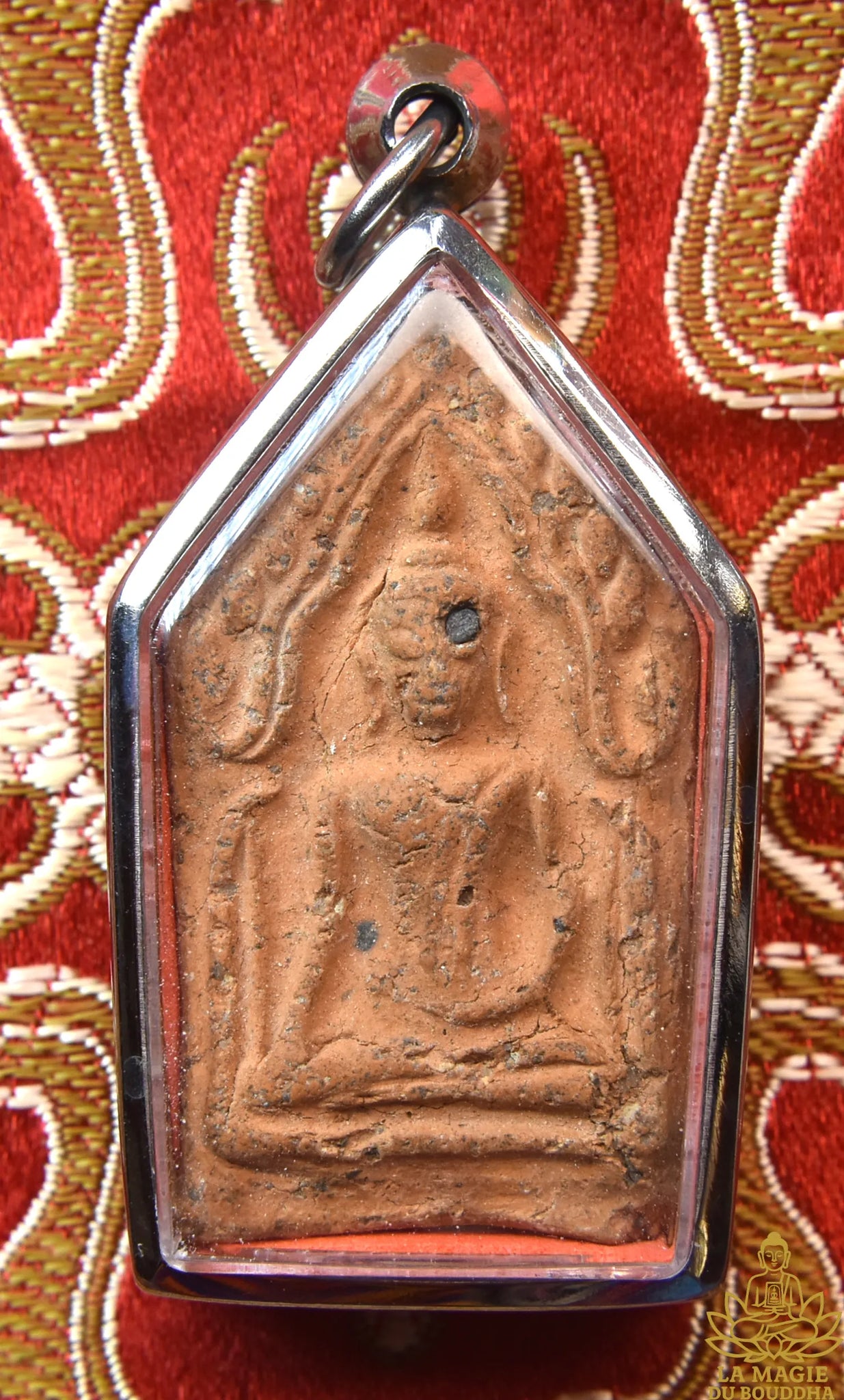 The amulet retains a beautiful ancient patina, with its grainy texture typical of the sacred lands of Ayuthaya . It is mounted in a modern stainless steel reliquary , guaranteeing both protection and elegance.
