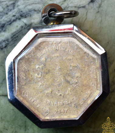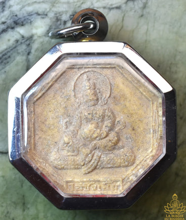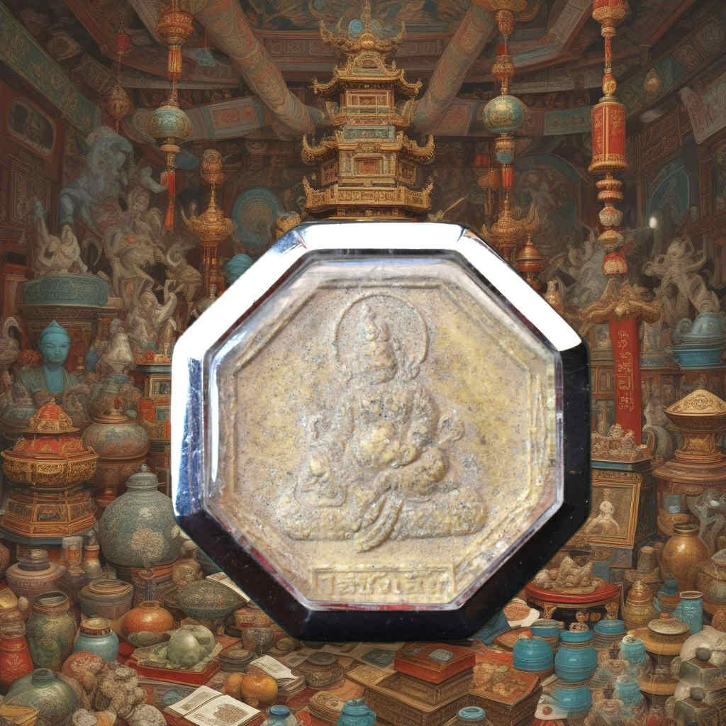 On the obverse, Kubera is depicted seated in majesty, holding the symbols of his fortune and power. The reverse of the amulet is adorned with sacred inscriptions, the 12 animals of the Chinese zodiac and blessed yantra, reinforcing its spiritual efficacy. This octagonal amulet embodies protection, financial luck and lasting prosperity .