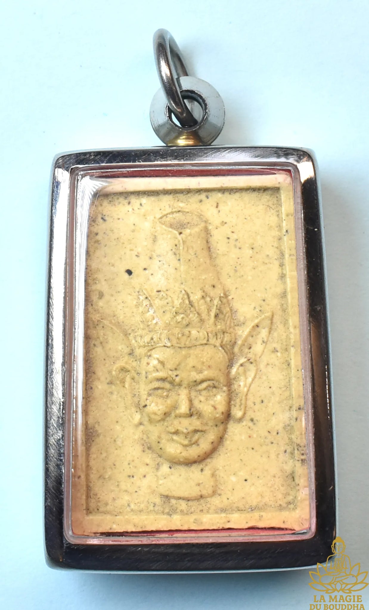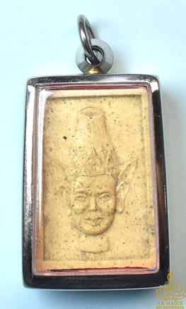 Crafted from sacred powder in natural hues, this piece exudes a gentle, benevolent energy, typical of creations blessed for metta mahaniyom , benevolent attraction, and personal fortune. The reverse features fine khom characters and yant intended to strengthen the wearer's magnetic aura and attract prosperity.