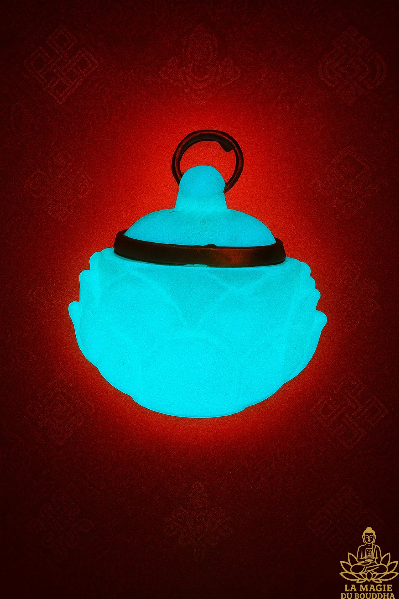 Beautiful Tibetan reliquary in luminescent resin in the shape of a lotus
