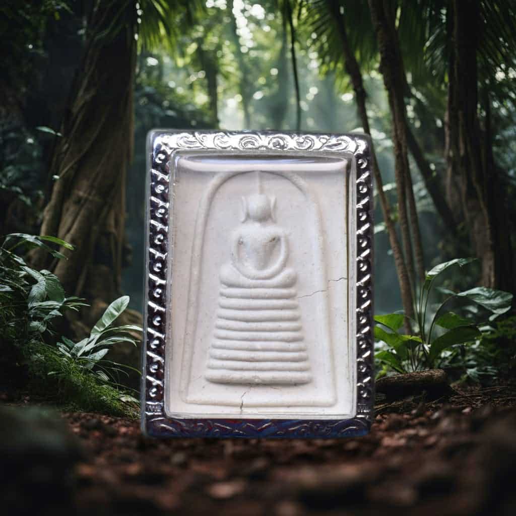 Portée près du cœur, cette Phra Somdej soutient la concentration, la chance bienveillante et la protection discrète. Les neuf niveaux évoquent la montée vers la sagesse ; le revers lié à Phra Hin On ajoute une dimension de calme, de pureté et de stabilité.